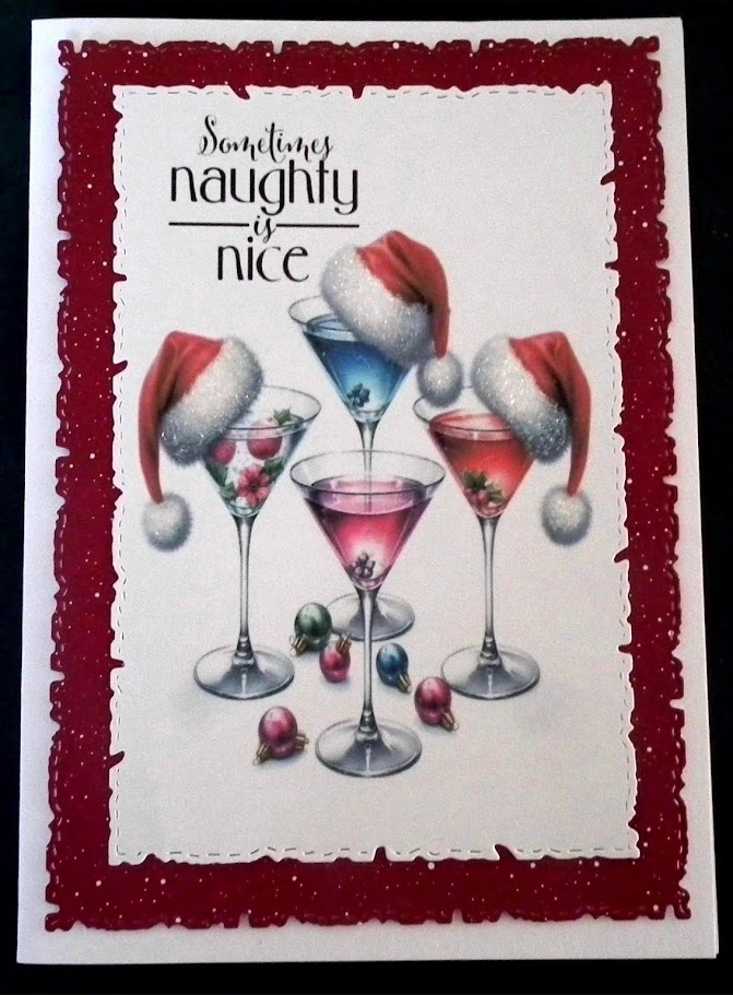 Paper from Nitwit, Images from Terry McTigue, Sentiment TLC, Dies from Carnation Crafts. Not easy to see but the fur on Santa hat has white glitter.
